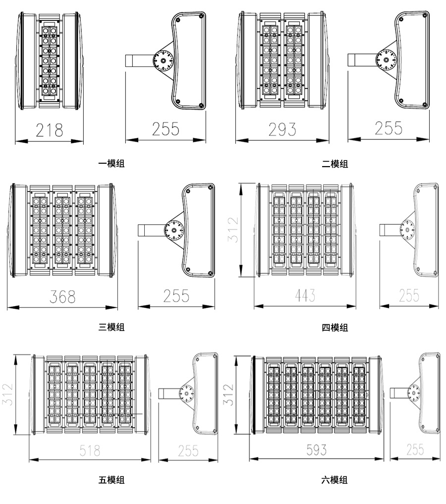 模组LED隧道灯尺寸图集
