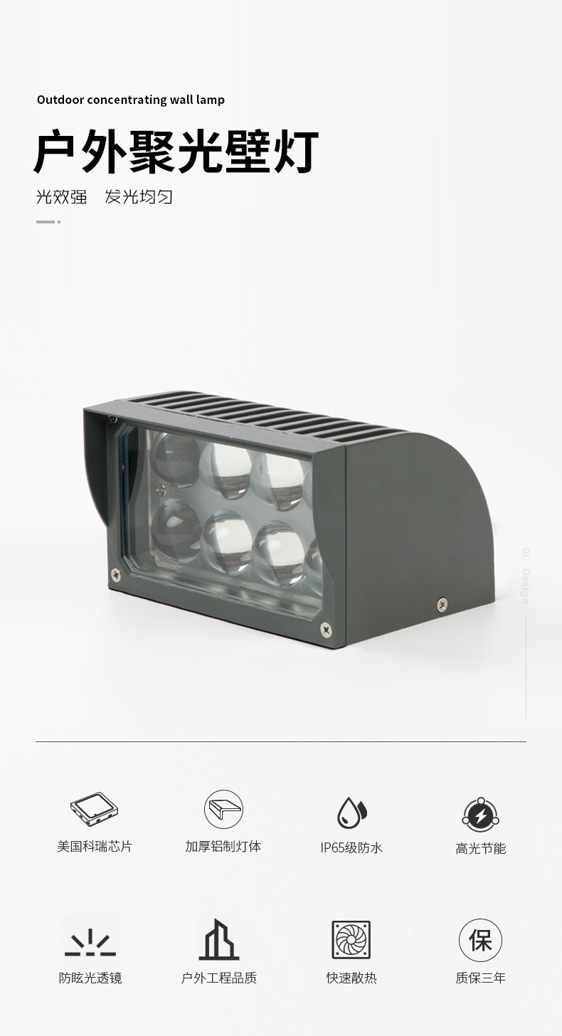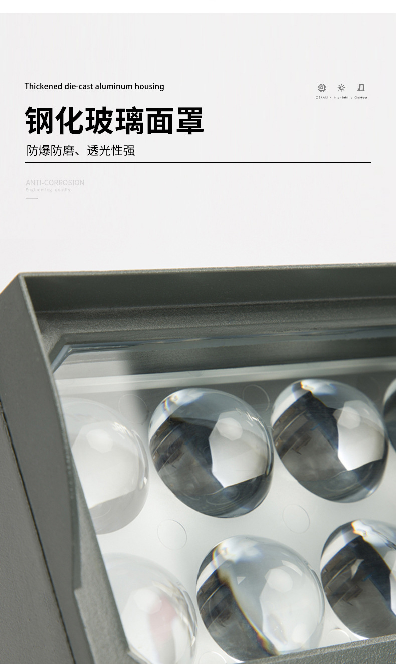 led 射灯投光灯聚光投射一束光壁灯户外防水光柱罗马柱工程亮化